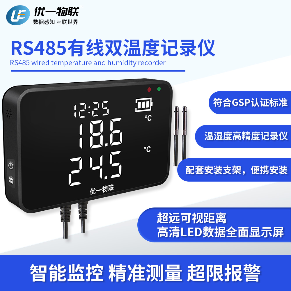 S200R RS485產品系列是一款安裝在固定場所的有線溫濕度記錄儀,高清全屏LED顯示,可視距離遠,高精度,大存儲容量,配套支架安裝。 廣泛應用于農業、食品、醫藥、化工、電子、實驗室等在線監測系統中,該記錄儀采用瑞士原裝進口一體式傳感器,內置充電鋰電池,支持外電供電充電,超低功耗,且都支持外置可調聲光報警器。